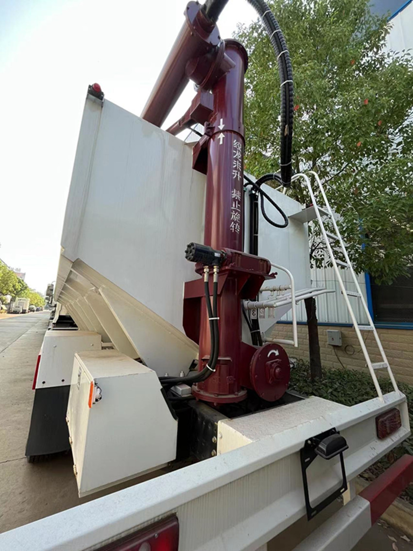 可獨(dú)立控制各分倉(cāng)卸料順序和速度,整車(chē)3條蛟龍(底部水平絞龍、尾部垂直絞龍、頂部卸料絞龍),由取力器經(jīng)車(chē)輛變速箱取力后,將動(dòng)力傳動(dòng)至高壓油泵以驅(qū)動(dòng)液壓系統(tǒng)帶動(dòng)各絞龍工作,或者由3個(gè)5.5kw 380v電機(jī)帶動(dòng)各絞龍工作,頂部絞龍液壓控制舉升,可左右旋轉(zhuǎn)180°此車(chē)公告+環(huán)保+燃油齊全,全國(guó)上戶無(wú)憂!