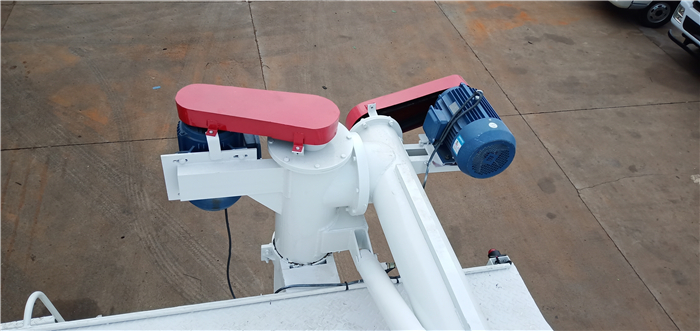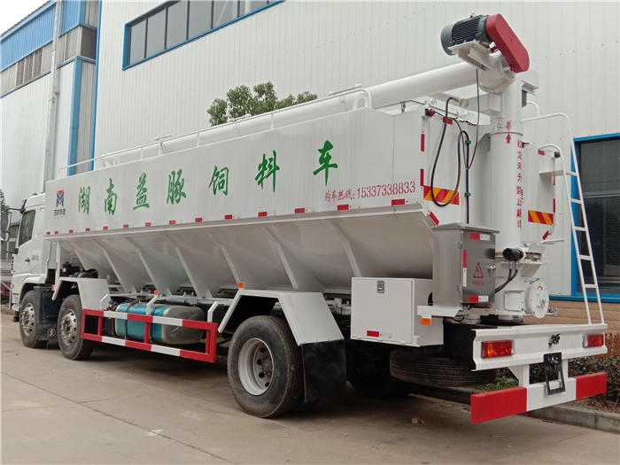 上裝罐體:罐體材質(zhì)采用4mm優(yōu)質(zhì)碳鋼板,整車3條絞龍,由3個5.5KW電機(jī)380V外接電源帶動頂部絞龍用液壓控制舉升,可左右旋轉(zhuǎn)180°。罐體內(nèi)分為四個倉,可以獨(dú)立控制各分倉卸料順序和速度。(備注:此報(bào)價為標(biāo)配,國產(chǎn)電機(jī),德力西電柜)