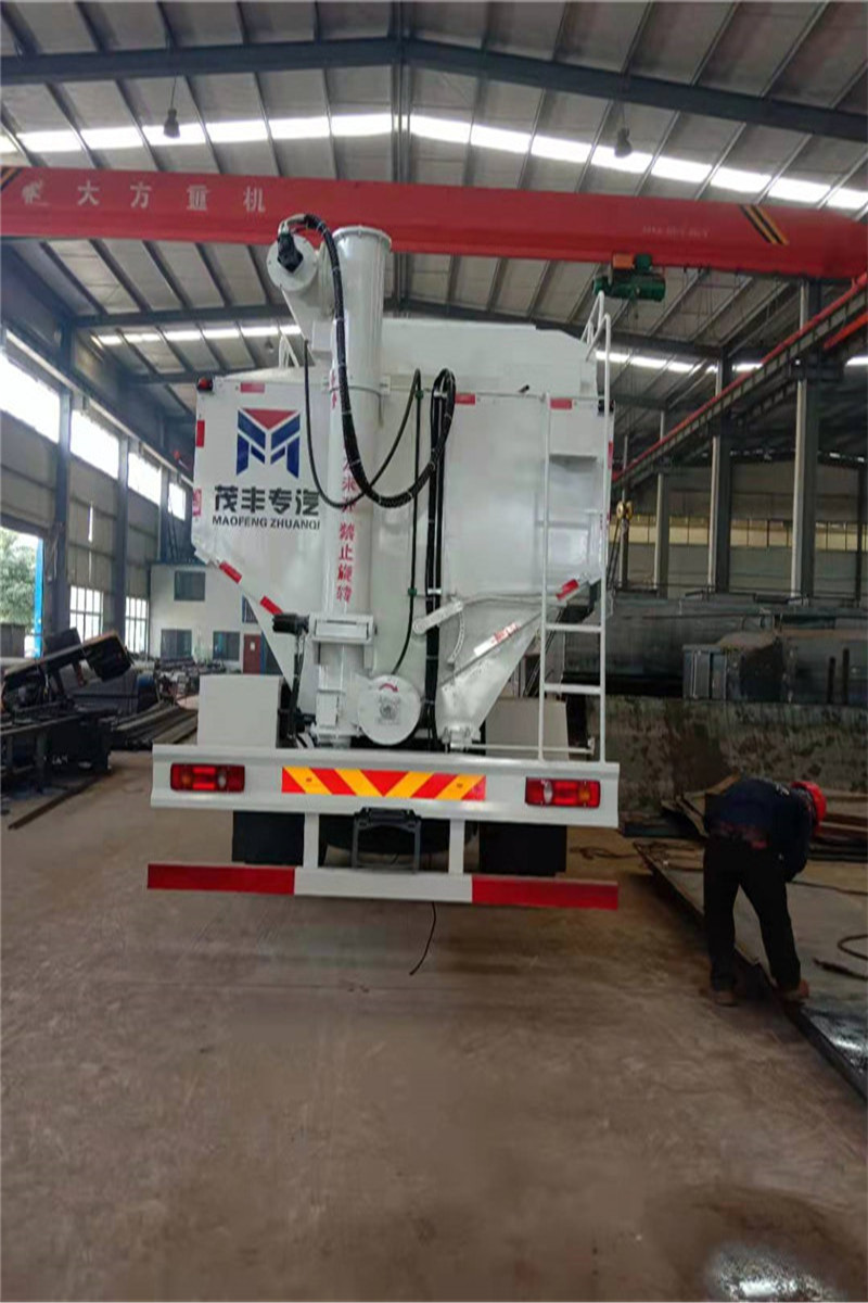 (1)液壓式螺旋輸送散裝飼料運輸車:汽車變速速器通過取力器驅(qū)動高壓油泵,經(jīng)由液壓管路驅(qū)動液壓馬達(dá),帶動水平螺旋輸送器的葉片軸及葉片旋轉(zhuǎn),經(jīng)活動輸送系統(tǒng)(俗稱活動絞龍)將飼料輸出。 (2)電動螺旋輸送散裝飼料運輸車(俗稱電動絞龍散裝飼料車):采用螺旋輸送器卸料,螺旋輸送器的動力,一是可以利用底盤發(fā)動機驅(qū)動車載發(fā)電機發(fā)電來驅(qū)動上裝電動機,驅(qū)動螺旋輸送器卸料;二是可以利用市電(三相380V)驅(qū)動電動機,繼而驅(qū)動螺旋輸送器卸料。兩種電力驅(qū)動方式,用戶可根據(jù)實際情況靈活切換,其中市電驅(qū)動方式結(jié)構(gòu)、操作最為簡單。 此種運輸車廣泛應(yīng)用于輸送距離遠(yuǎn)(長距離)、卸料快、殘留量低、對物米料無污染等特點;而且,車輛不進(jìn)場就可完成送料進(jìn)料塔的工序,杜絕了養(yǎng)殖場車輛進(jìn)場防疫問題;廣泛應(yīng)用于各類養(yǎng)殖企業(yè)、飼料加工企業(yè)。
