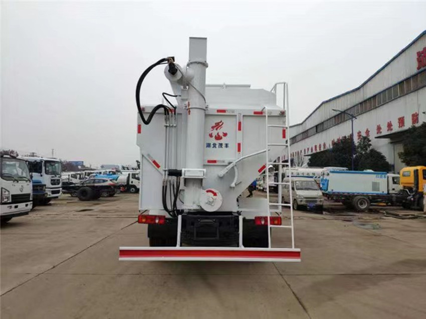 散裝飼料運輸車,散裝飼料車的飼料罐架設(shè)在卡車的底盤上,罐頂開有進料口.頂部的一根螺旋輸送卸料管(俗稱卸料絞龍)則可自由回轉(zhuǎn)和抬升,抬升的仰角可達60度。運輸時,頂部的螺旋管平臥在罐頂;卸料時則抬起,使管端的出料口與畜禽飼養(yǎng)場貯料罐頂部的進料門相接,駕駛室內(nèi)裝有操縱裝置(操縱裝置也可裝置在罐體尾部),卸料時通過車底的動力輸出軸和減速器來驅(qū)動螺旋,以完成卸料。